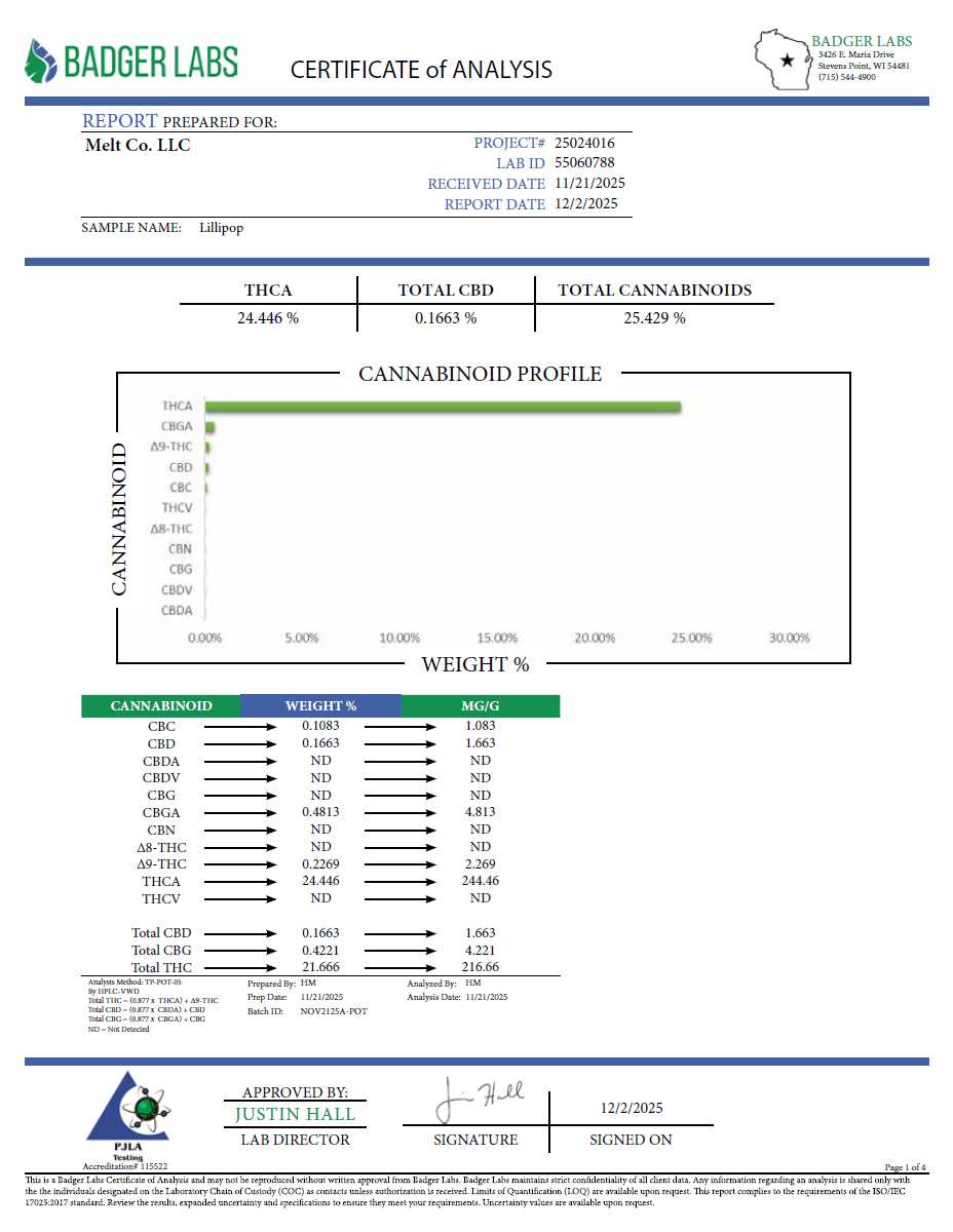 Why Choose Melt Official: Every batch of our Lollipop Smalls undergoes rigorous third-party lab testing to ensure purity, potency, and compliance. We're committed to delivering premium THCA products you can trust.